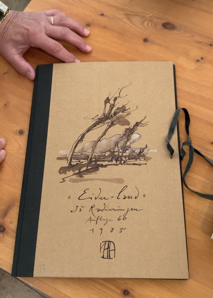 Das Museum Haus Peters beherbergt seit vielen Jahren ein kleines, aber feines Horst-Janssen-Kabinett, in dem u. a. der Radier-Zyklus „Eiderland“ ausgestellt ist. 35 Radierungen, die viel Raum für Phantasie lassen: Bäume, Wolken, Wind, Reet, Regen… genial in Szene gesetzt, teils Zufallsprodukte – Janssen ließ immer auch seine Materialien mitspielen – aber immer besonders.